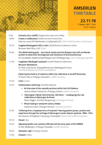 Full programme of the History of Medicine in Wales Conference AMSERLEN TIMETABLE 22.11.19 Y Drwm, LlGC | NLW 9.30–5.00pm 9.30 10.00 Cofrestru (te a choffi) | Registration (tea and coffee) Croeso a…