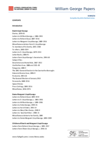 Schedule of the William George collection (PDF 2.48MB) William George Papers B1989/38 Compiled by John Graham Jones CONTENTS Introduction David Lloyd George Diaries, 1878-92 Letters to William…