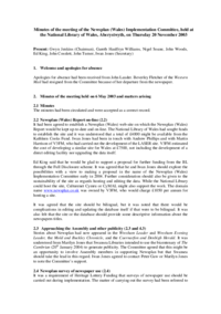 Implementation Committee: 20 November 2003 Minutes of the meeting of the Newsplan (Wales) Implementation Committee, held at the National Library of Wales, Aberystwyth, on Thursday 20 November 2003…