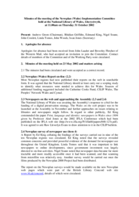 Implementation Committee: 31 October 2002 Minutes of the meeting of the Newsplan (Wales) Implementation Committee held at the Western Mail Offices, Cardiff at 11.00am on Thursday 23 May 2002 Present:…