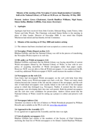 Implementation Committee: 10 May 2001 Minutes of the meeting of the Newsplan (Cymru) Implementation Committee held at the National Library of Wales at 10.30 a.m. on Thursday 10 May 2001 Present:…