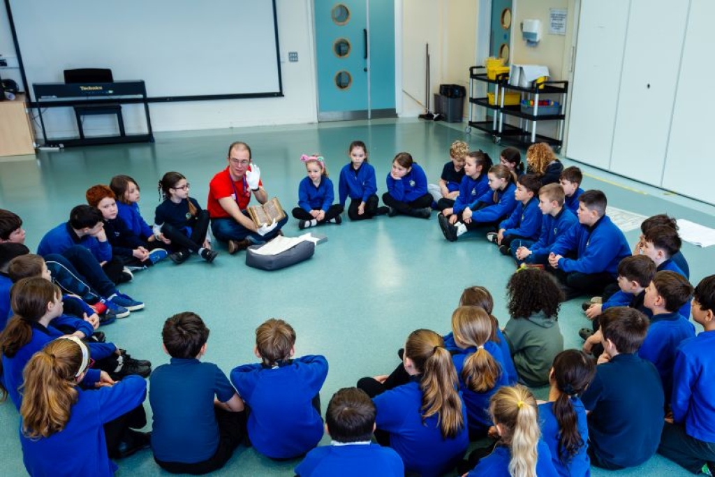 Bu cyfle i'r disgyblion hefyd weld rhai o drysorau'r Llyfrgell gan gynnwys Llyfr Taliesin, sy’n cynnwys un o’r cyfeiriadau cynharaf at Ddewi Sant a rhai o’r cerddi Cymraeg hynaf, a mapiau unigryw John Ogilby, sy’n nodi’r llwybr pererindod.